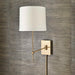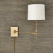 Swing Time Sconce provides a delicate profile to keep things light and airy. The round shade, affixed to the antique brass finish frame, can swivel left or right from the wall mount. Includes dual mount option with 8' of wire & plug, in-line dimmer switch, and 3-12" metal cord covers for easy plug in installation or it can be wired directly to an outlet box as a sconce. 1-60 watt max, Edison socket. Bulb not included.