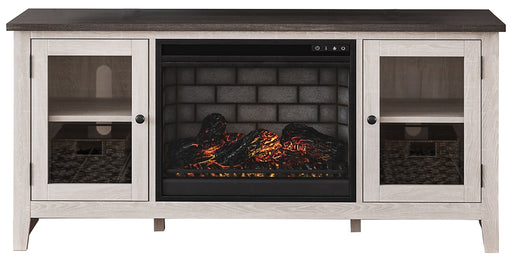 Signature Design by Ashley®Consumer's ChoiceThis TV stand with fireplace insert is the ultimate statement piece for a coastal cottage or shabby chic inspired retreat. Its whitewashed finish i...