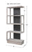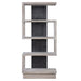The Dramatic Contrast Of This Asymmetrical Etagere Gives An Updated Contemporary Feel, Featuring Elm Veneer Shelving Finished In Light Gray, Accented With A Deep Black Recessed Panel With A Light Gray Glazing.