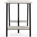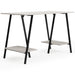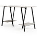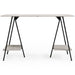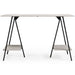 Details Made of engineered wood and decorative laminate, Whitewashed woodgrain finish, Sawhorse legs with gunmetal finish, 2 fixed shelves, Assembly required
