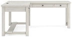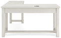 Details Includes desk and desk return, Made with hardwood solids, ash veneer and MDF substrates, Antiqued white finish with wood grain texture, Round metal knobs with aged pewter-tone finish, 3 smooth-gliding drawers , Wide keyboard drawer with drop-down front, Cutout for cord management, 110V power supply with USB-A and USB-C charging ports , Power cord included; UL Listed, Assembly required