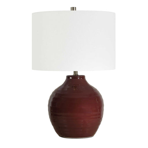 Salt & LightThe textured body of this ceramic lamp is enhanced with a deep ruby red glaze. Antique brass details complement the rich finish. The round hardback...