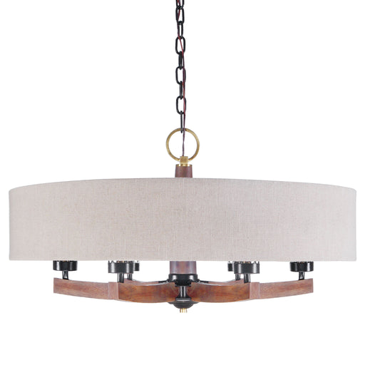UttermostUnique Curved Wood Arms Combined With Modern Oatmeal Linen Fabric Hanging Outer Shade Give This 6 Lt. Chandelier A Clean Update Feel. Special Woven...