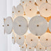 Six layers of illuminated alabaster cast a stunning effect to make up this 8 light pendant. Each disc is held by an individual rich brass arm, complementing the alabaster and creating a modern statement. Given the nature of the natural alabaster discs, some will be more opaque while others will contain more dark veining, creating a truly unique glow. 8-60 watt max, candelabra sockets. Bulbs not included. Supplied with 15' wire, 3-12" stems, and 1-6" stem for adjustable installation.