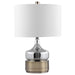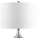 Paying Homage To Mid-century Style, This Table Lamp Features A Chrome Plated Glass Base Displayed On A Chunky Antique Brass Plated Foot And Finial. The Lamp Is Complemented By A Round Drum Shade In A White Linen Fabric.