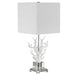 Add Nautical Style To Any Space With This Realistic White Coral Lamp That Is Displayed On An Elegant Crystal Platform, Accented With Polished Nickel Plated Details. The Square Hardback Shade Is A Light Beige Linen Fabric With Natural Slubbing.