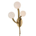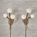 For flattering light that almost dances when illuminated, the Cornet Sconce combines two large globes with a smaller one. Seedy Opal glass follows organic shapes inspired by Art Nouveau design. The steel body is warmed by a light antique finish. Includes dual mount option with 8' of wire & plug, in-line dimmer switch, and 3-12" metal cord covers for easy plug in installation or it can be wired directly to an outlet box as a sconce. 3-60 watt max, candelabra sockets. Bulbs not included.