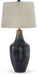 Details | Made of indigo and goldtone metal with fabric modified drum shade, 3-way switch, 1 type A bulb (not included); 100 watts max or CFL 23 watts max; UL Listed, Assembly required, Clean with a soft, dry cloth | |