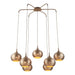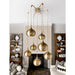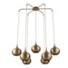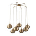 A romantic shape used in architecture across the world for millennium, the gold onion dome was the inspiration for the stunning Golden Onion Chandelier. Made of steel, the shade is acid-etched to create a unique pattern casting a starry reflection and an inner glow. Finished in rich brass, featuring a seven- arm spider, functional ambient light is supplied through the open bottom of each shade. 7-60 watt max, Edison sockets. Bulbs not included. Supplied with 11 feet of neutral color fabric-covered cords lengths so you can adjust to your desired height.