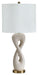 Cool curves. Contemporary character. With this table lamp, you get elevated form and modern function in one delightfully artistic package. The figure-eight style shape has an eye-catching sense of movement, platformed by a sleek goldtone base. Stage it alone on an accent table, or pair it with sculptures and other decor for maximum impact.