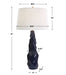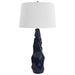 This Ceramic Table Lamp Showcases A Contemporary Abstract Geometric Design Finished In A Striking Navy Blue Gloss Glaze With Plated Brushed Brass Details. Paired With A Tapered Hardback Shade In A White Linen Fabric.