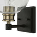 Timeless Lines Make This 1 Lt. Sconce An Understated Classic. Finished In A Combination Of Matte Black & Plated Antique Brass Then Topped With Sparkling Clear Round Glass Shade. 1-60 Watt Max, Edison Socket. Bulbs Not Included.