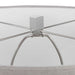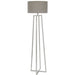 Slightly Tapered In Stature These Triangular Shaped Legs Are Crafted Out Of Polished Stainless Steel. The Round Hardback Drum Shade Is A Textured, Taupe-gray Linen Fabric.