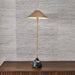 Elegant simplicity. A dramatic tapered shade and slender metal column body share the same antique brass finish. The stunning Italian Arabescato marble base includes a dimmer switch. Due to the nature of marble, every piece will vary slightly ensuring yours is unique.