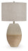 Details Made of metal with drum hardback fabric shade, Cream and beige finish, 3-way switch, 1 E26 socket, type A bulb recommended (not included); 150 watts max or LED equivalent; UL Listed, Minor assembly required; simply attach preassembled shade to lamp base