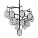 Rings Of Dark Hammered Bronze With A Subtle Golden Interior. Inspired From Mid-century Modern Design, Each Ring Holds Two Handmade Artisan Inspired Clear And White Swirl Glass Ovals. 15-40 Watt Max G9 Sockets. Bulbs NOT Included. Supplied With 15' Wire, 3-12" Stems And 1-6" Stem For Adjustable Installation.