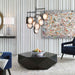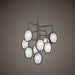 Rings Of Dark Hammered Bronze With A Subtle Golden Interior. Inspired From Mid-century Modern Design, Each Ring Holds Two Handmade Artisan Inspired Clear And White Swirl Glass Ovals. 9-40 Watt Max G9 Sockets. Bulbs NOT Included. Supplied With 15' Wire, 3-12" Stems And 1-6" Stem For Adjustable Installation.