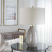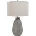 Exhibiting A Handcrafted Look, This Ceramic Table Lamp Features A Textured Finish Reminiscent Of Woven Fabric And Is Finished In Various Shades Of Neutral Grays And Taupe With Rust Brown Accents And Antique Brushed Brass Hardware. The Piece Is Completed By A Casual Khaki Hardback Drum Shade With Natural Slubbing.