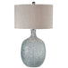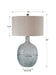 The Finish On This Glass Base Is Reminiscent To An Ocean Wave Crashing, Featuring Mottled Highlights Of Blue-green, Covered In A Heavily Textured Aged White Glaze, Paired With Brushed Nickel Plated Details. The Round Hardback Drum Shade Is A Light Beige Linen Fabric With Natural Slubbing.