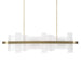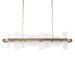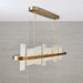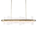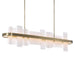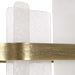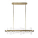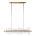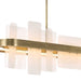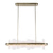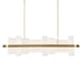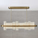 Soft rectangles of thick Opaline bubble glass glow, while floating and overlapping, illuminated by LED light. The light antique brass finish band has a soft embossed brush-like texture. Supplied with 15' wire, 6-12" stems and 1-6" stem for adjustable installation. No bulb required with the built-in LED light Strip: 60 watt, 3000K, CRI of 90, 6150 Lumens, 30,000 estimated hours of illumination, compatible with Lutron DVCL-153P dimmer.