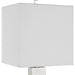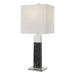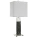 The Perfect Blend Of Classic And Contemporary Looks, This Table Lamp Displays An Elegant Natural Black Marble Column With Gray And White Veining Accented By Polished Nickel Plated Finishes. The Hardback Square Shade Is Covered In A Crisp White Linen Fabric.