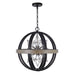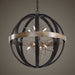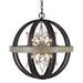 Large transitional statement orb in distressed textured bronze featuring a stained washed wood center band, all surrounding an interior brushed nickel 8 light geometric star. 8-60 watt max, candelabra sockets. Bulbs not included. Supplied with 7' of chain and 20' of wire for adjustable installation.