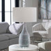 Showcasing A Refined Coastal Style, This Table Lamp Has A Ceramic Base Finished In An Aqua And Teal Crackle Glaze With Touches Of Rust Brown. Polished Nickel And Crystal Accents Highlight The Design. The Lamp Is Paired With A Round Hardback Drum Shade In A White Linen Fabric.