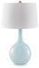 Details Made of glass with modified drum hardback fabric shade, Aqua finish, 3-way switch, 1 E26 socket, type A bulb recommended (not included); 150 watts max or CFL 25 watts max; UL Listed, Due to the finishing process of this product, some variations may occur, Assembly required