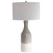 Showcasing A Bohemian Flair, This Ceramic Table Lamp Is Finished In A Glossy Warm Gray Glaze That Transitions To A Heavily Textured Ivory Bottom. The Casual Contemporary Styling Is Paired With Plated Brushed Nickel Accents. The Hardback Drum Shade Is Light Gray Linen With Natural Slubbing.