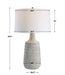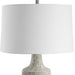 Drawing Inspiration From Antique Clay Pottery, This Table Lamp Is Handcrafted From Ceramic In A Mottled Gray And Off-white Matte Glaze With Subtle Carved Details. Steel Accents Are Finished In Brushed Nickel. The Hardback Drum Shade Is Covered In A Casual White Fabric.