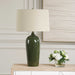 A perfect blend of contemporary style and timeless charm, this ceramic lamp is finished in a distressed emerald green glaze, with antique brass accents complementing the beautiful finish. This simple but elegant silhouette is topped with a slightly tapere