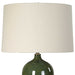 - Ceramic Base Finished In A Distressed Emerald Green Glaze With Antique Brass Accents