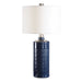 Intricately Embossed Ceramic Finished In A Royal Blue Glaze, Accented With Brushed Nickel Plated Details. The Round Hardback Drum Shade Is A White Linen Fabric With Natural Slubbing.