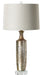 Textured Ceramic Base Finished In A Metallic Bronze Glaze And Paired With Crystal Details And Brushed Nickel Plated Accents. The Slightly Tapered Round Hardback Shade Is A Beige Linen Fabric. Due To The Nature Of Fired Glazes On Ceramic Lamps, Finishes Will Vary Slightly.
