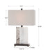 This Modern Silhouette Features Two Rectangular Slabs Reminiscent Of Billowing Smoke Fastened In An Off-set Construction Accented With Polished Black Nickel Plated Details. The Rectangle Hardback Shade Is An Off-white And Gray Linen Fabric With Natural Slubbing.