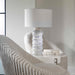 A Contemporary Take On Classic Blue And White Ceramics, This Table Lamp Features A Unique Sculpted Design With A Hand Applied Light Cobalt Blue Drip Glaze, Paired With Brushed Nickel Plated Details. The Lamp Is Paired With A Crisp White Hardback Drum Shade.