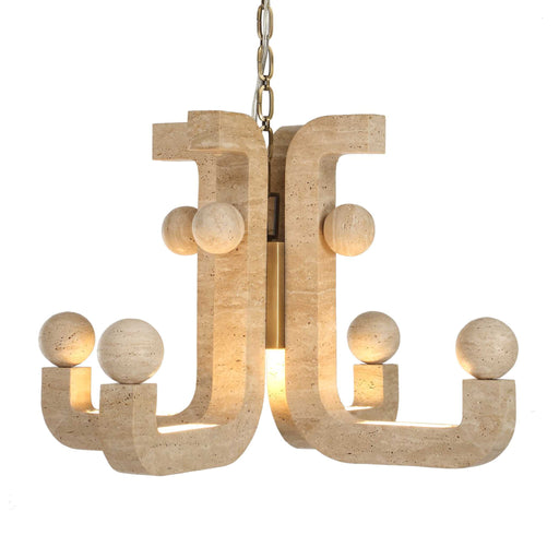 RevelationSculptural arms of unfilled beige travertine are highlighted with four LED up lights and one center downlight. The impressive chain has alternating...