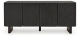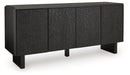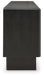 Details | Made with solid wood, Black finish, Door fronts with carved pattern, 4 doors with push magnet function, 2 shelves, Openings in back for electronics, Minor assembly required; simply lay flat and attach legs | |