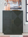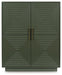 This accent cabinet makes a big impact with just one piece. Its intricately patterned doors impress with their dimension, while the dark green finish and sleek goldtone handles add a touch of modern elegance. Adjustable shelves add everyday functionality to this sophisticated yet approachable piece.