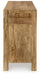 Details | Made with mango wood solids, engineered wood and veneer, Natural brown finish, Door fronts with high-low block pattern, 4 doors with magnetic push latch function, 2 adjustable shelves | |