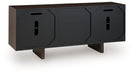 Details Made with acacia wood, acacia veneer and engineered wood, Medium brown finish, Wooden door pulls, Cutout drawer pulls, 2 smooth-gliding drawers with ball-bearing side glides, 2 fixed shelves, Openings in back for electronics, Minor assembly required; simply lay flat and attach feet