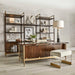 The Multiple Personality Collection is a creation of beauty, function and flexibility - designed to fit various spaces and lifestyles. Each piece can stand alone or be added together to create the perfect work space or display. Crafted of Trembesi wood (a native to Indonesia known for its dramatic variation in grain and color). A deep stain creates richness and depth and is complemented with metal details in a powder-coat finish. The Etagere features five permanent shelves. Explore how the Bridge Shelf and a second Etagere (sold separately) can customize the space.