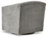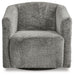 Details | Charcoal gray faux fur polyester upholstery, Barrel back, Tight seat cushion, Metal swivel base, 360-degree swivel | |