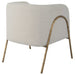 Inspired By Scandinavian Designs, This Barrel Back Style Chair Showcases Elegant Off White Faux Shearling Nestled In A Curved Chiseled Iron Frame Finished In Aged Gold.