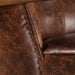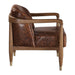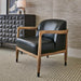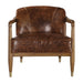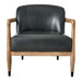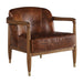 Showcased in a solid wood wrap-around frame in a finish with wire brushed details and a light cerusing, this mid-century inspired chair features top grain leather, complete with gunmetal feet caps. Because leather is a natural product, both texture and color will vary slightly from hide to hide and within the same hide. Seat height is 18".