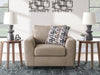 Transitional and right on trend. This oversized chair's upholstery is a delightful change from the ordinary, with hints of soft brown giving the gray hue added depth. It’s punctuated with a chic accent pillow in an eye-catching, stylized stripe design. Whether you're hosting friends and family or relaxing solo, this chair invites homey, comfortable character into your space.