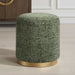 Finished with antique brushed brass iron accents, this ottoman is upholstered in a textured chenille, featuring a jewel-toned forest green polyester. This plush fabric offers both comfort and durability, as well as a rich, vibrant touch to any space.