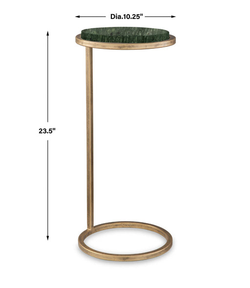 Salt & LightThis contemporary accent table features a dark green honed marble top paired with an aged gold iron frame. This beautiful combination will be an as...