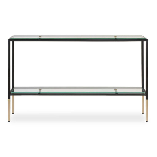 Salt & LightFinished in a sleek black with metallic gold accents, this metal console table features two spacious shelves, each made of tempered glass. The shel...