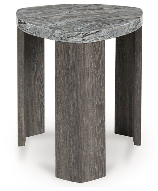 Signature Design by Ashley®Striking contemporary form, meet can’t-miss function. This end table pairs the look of faux gray marble with a weathered gray wood grain for a simp...